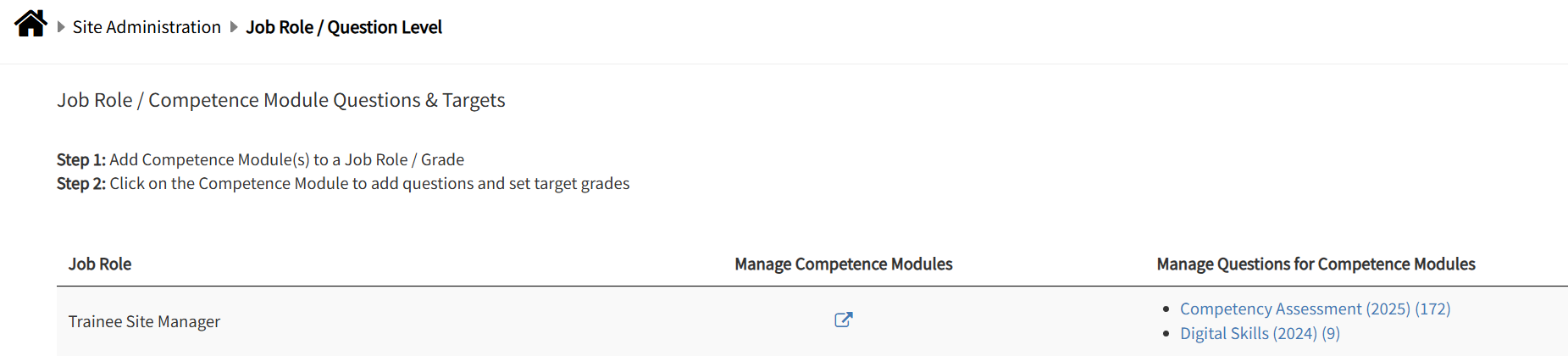 - click the relevant competency survey for that job title