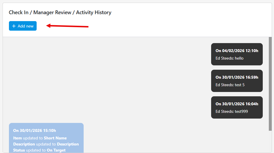 4. Add a new Check in / Manager Review / Activity History
