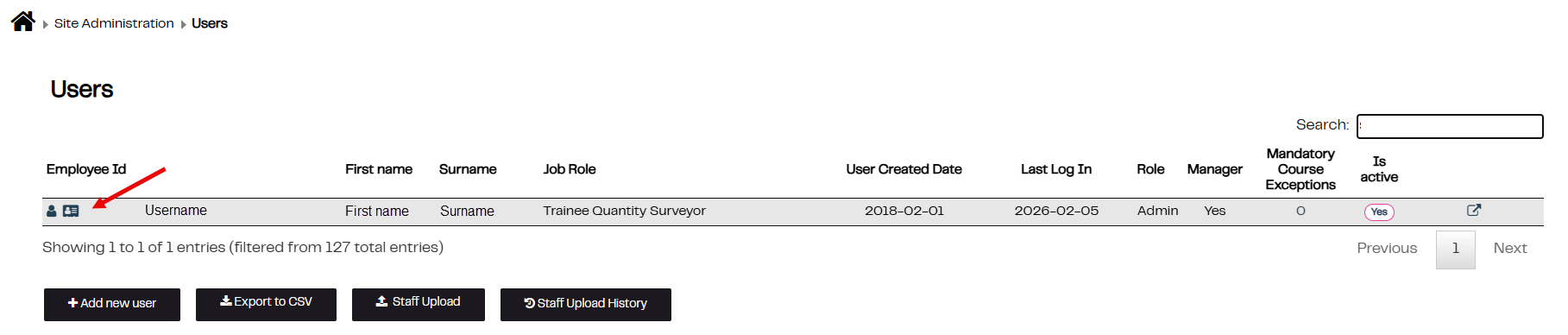 1. Click on the symbol to the left of the Employee ID