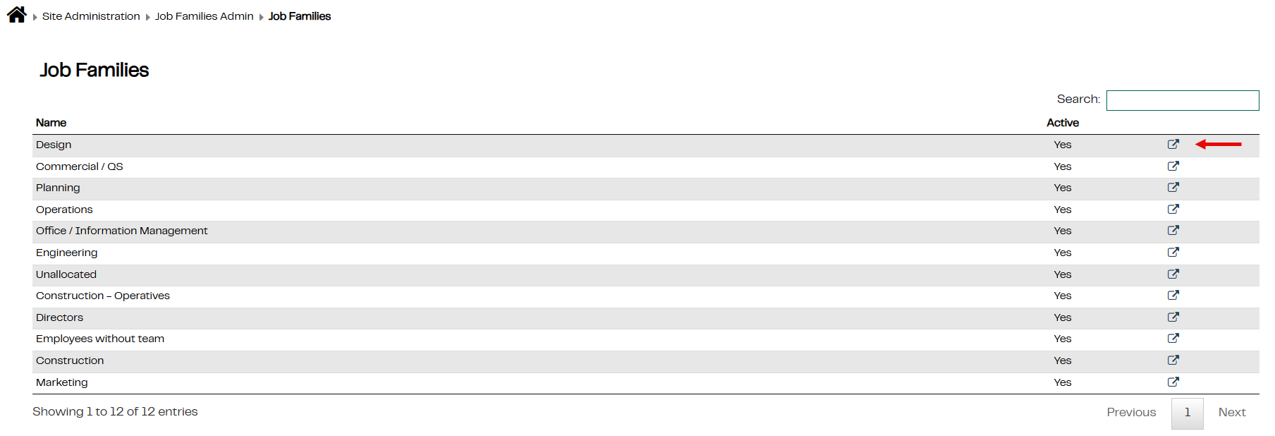 2.Click on the tab Job Families