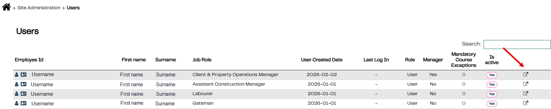 3. Select the Employee you wish to edit by clicking the edit symbol on the right of the page