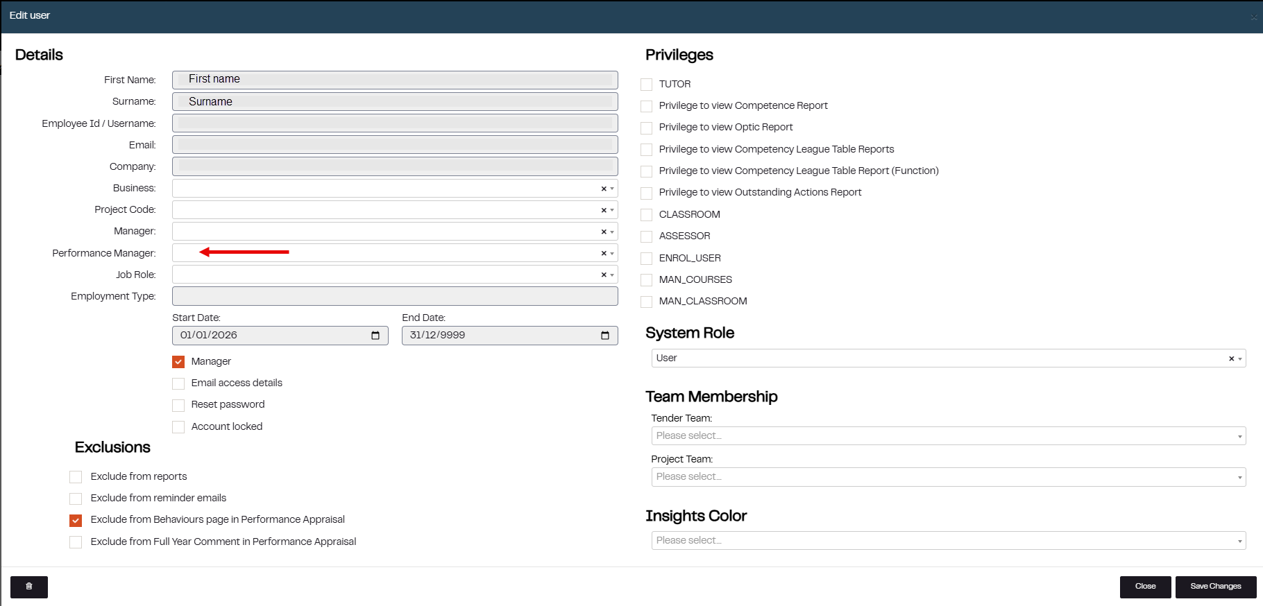 How to edit an Employees Performance Manager