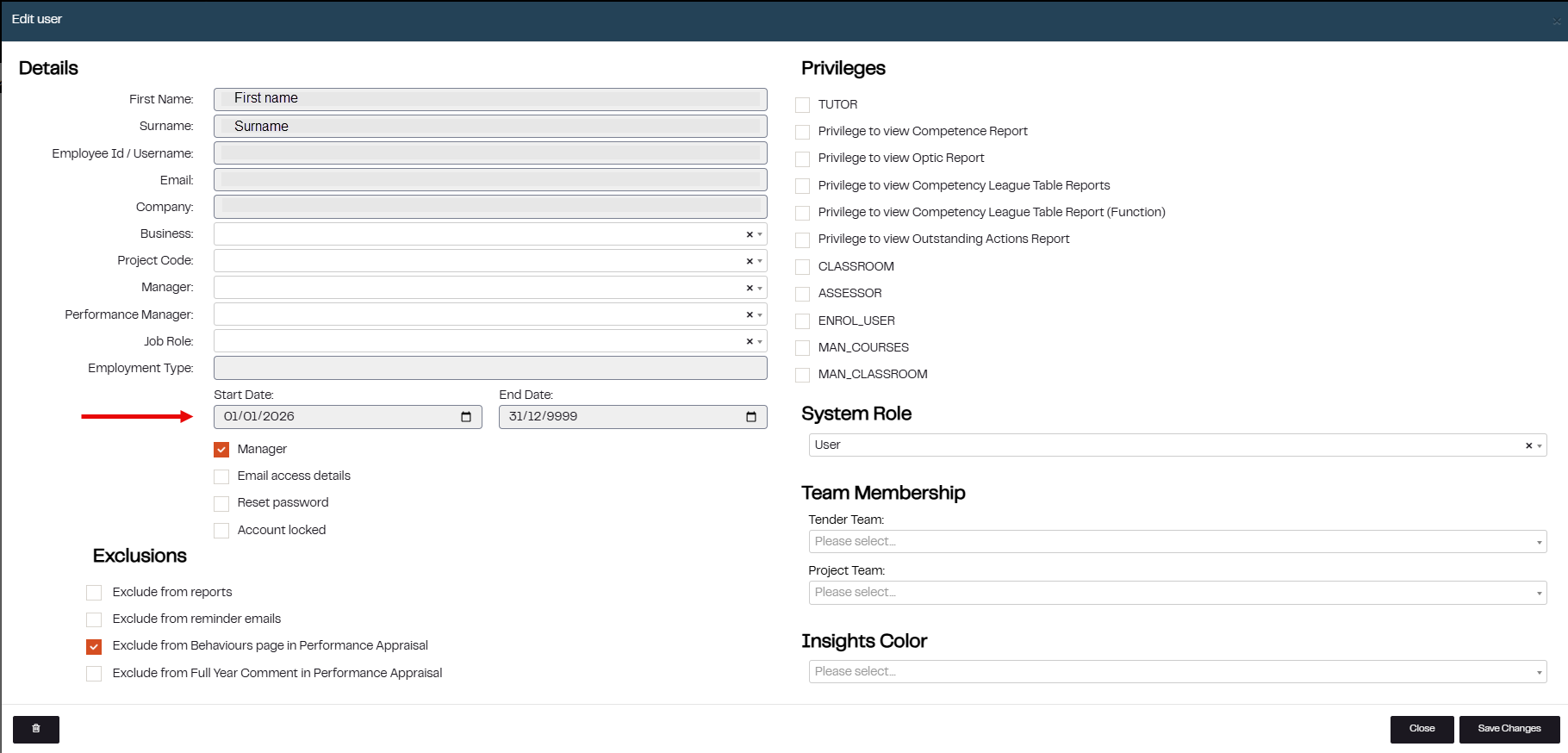 4. Edit the Employees Start Date or End Date