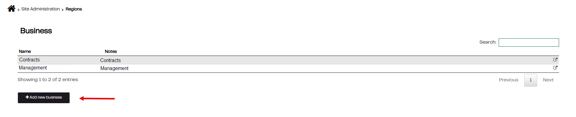 3. Click on + Add new business