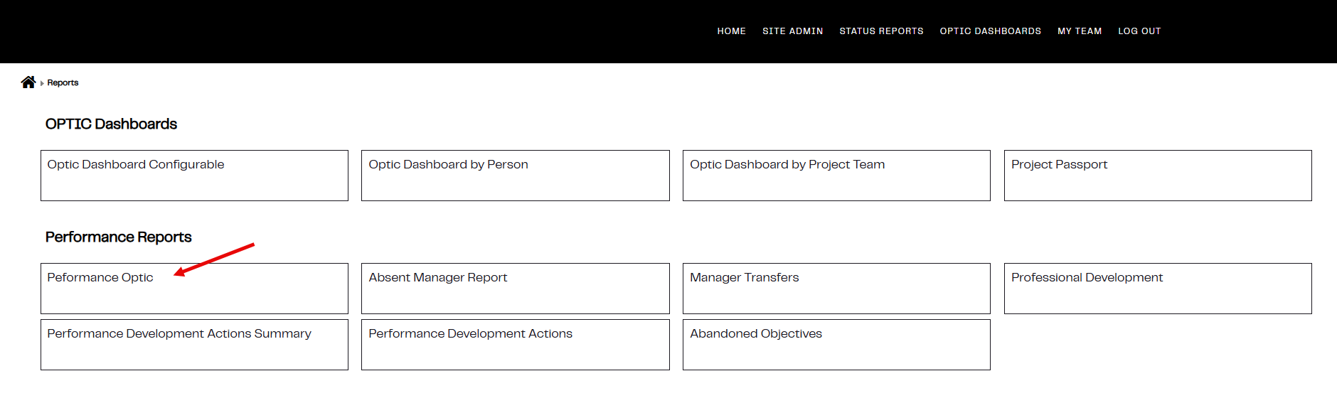 2. Under Performance Reports click on Performance Optic