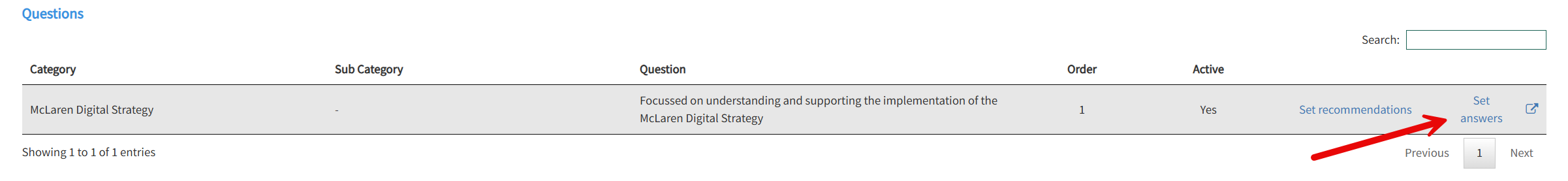 Select the question you wish to add LPs and ACM to and select Set answers