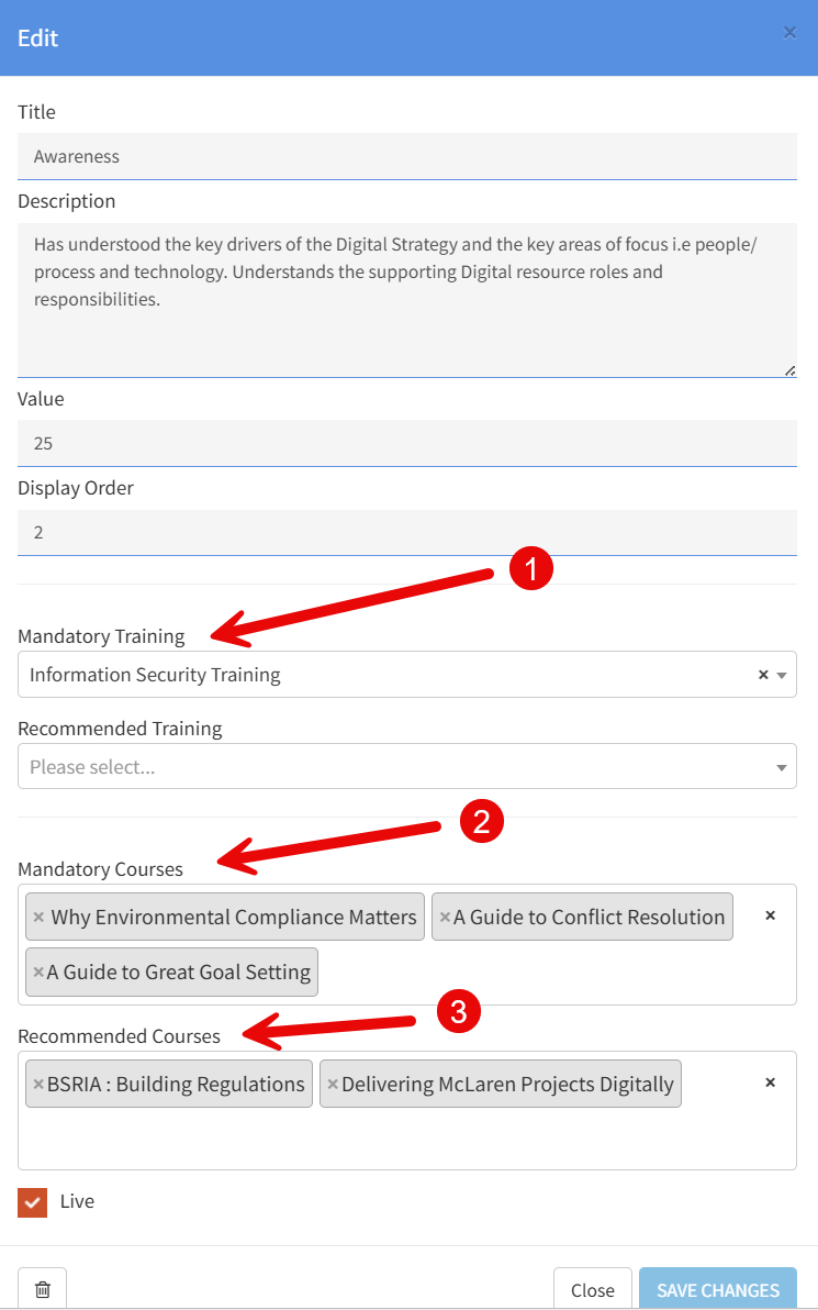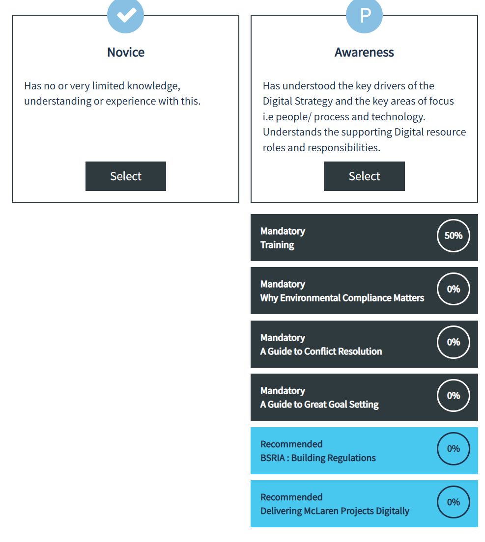 * Mandatory items will change the users rating to a provisional rating until the LPs and courses are completed wheras Recommended have no affect on the users rating