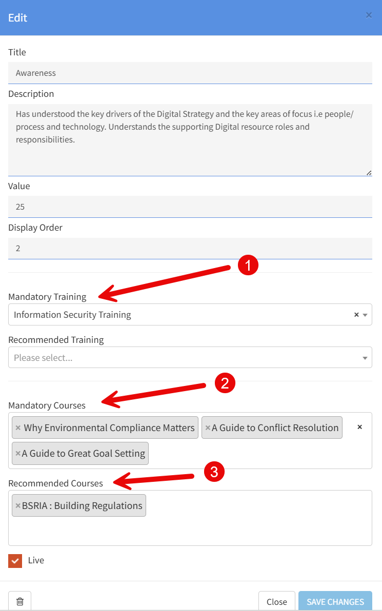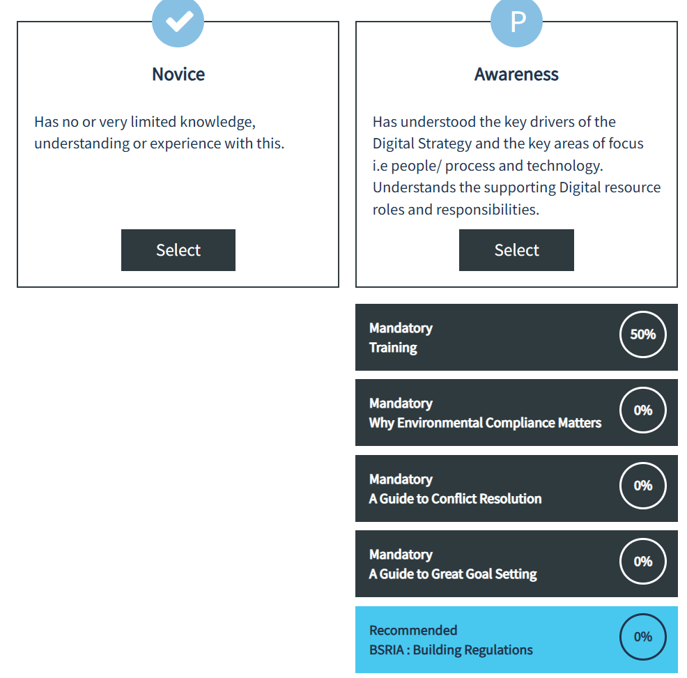 * Mandatory items will change the users rating to a provisional rating until the LPs and courses are completed wheras Recommended have no affect on the users rating